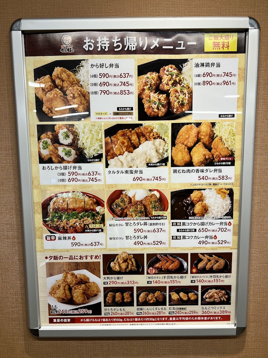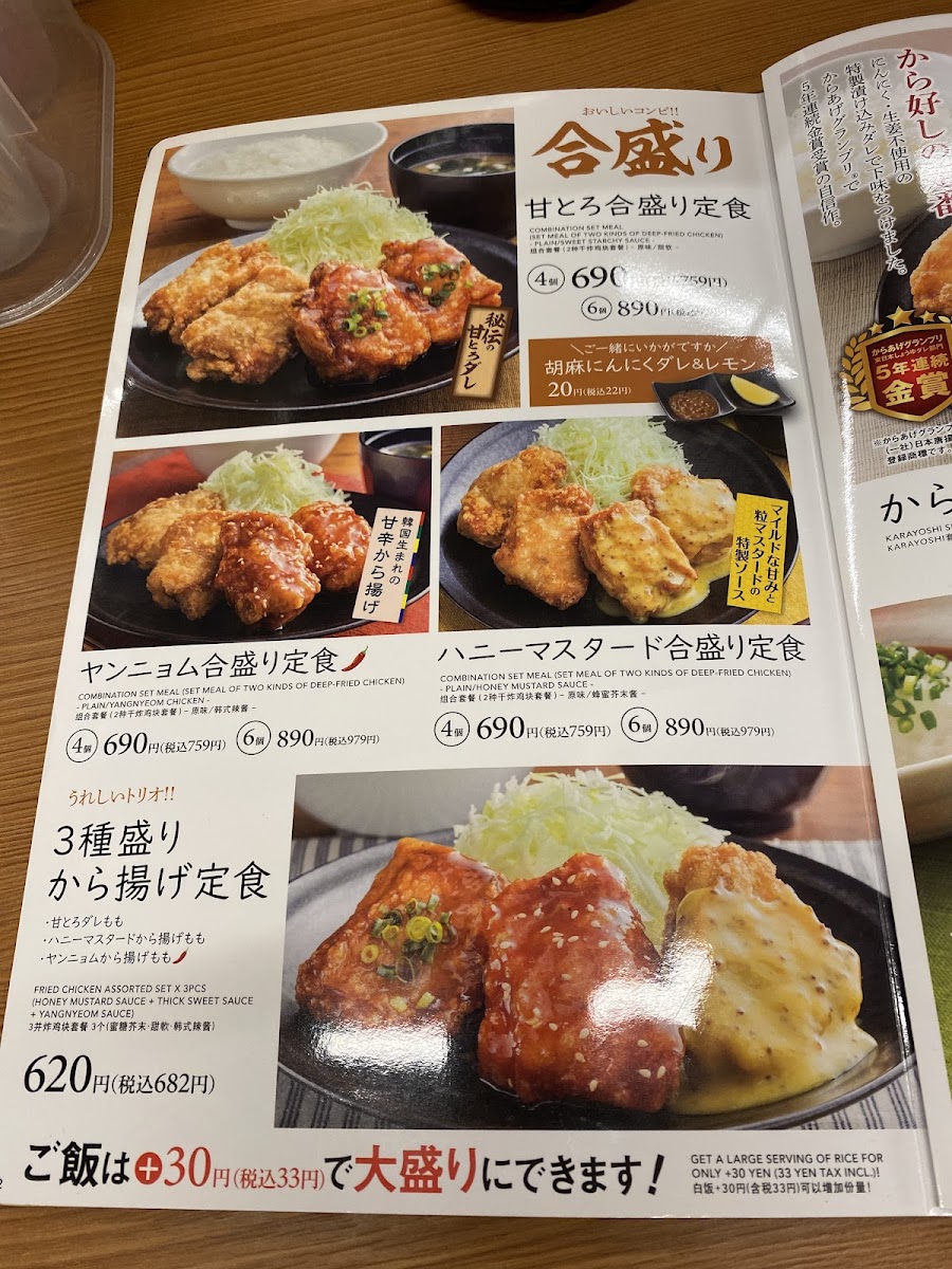 Welcome to Karayoshi - Sagamihara, a hidden gem nestled in the heart of Sagamihara, Kanagawa. Renowned for its delectable fried chicken, the menu is a delightful array focused on crispy, succulent karaage dishes. You can choose from options like the から好し定食, available in quantities of 3 to 6 pieces, ensuring a satisfying meal tailored to your appetite.